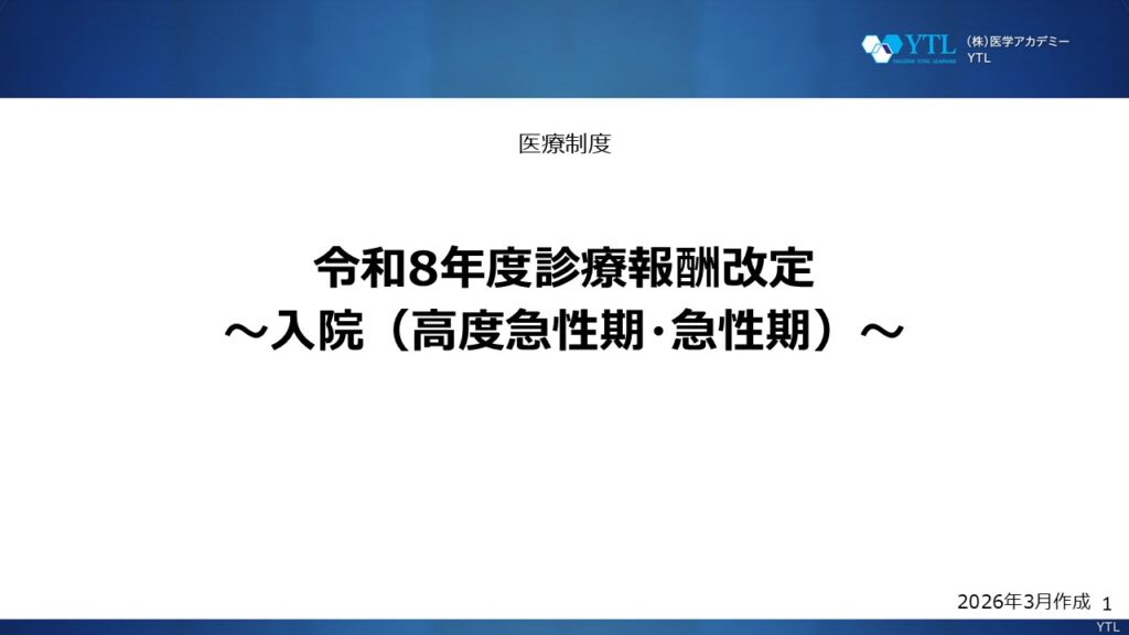 「入院(高度急性期・急性期)」を中心に、令和8年度改定の概要を解説します。 Keyword:入院、DPC、急性…